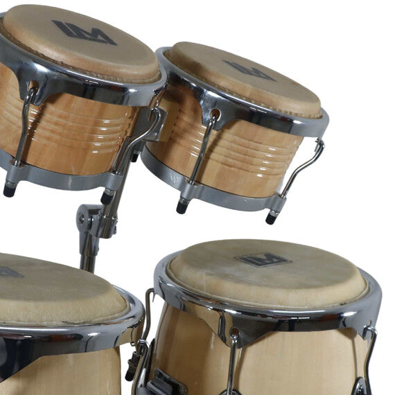 El set de Congas 10" y 11" y Bongos 7" y 9" modelo LM DRUMS CG-BCS es un conjunto de percusión que combina dos tipos de instrumentos clave en la música latina: las congas y los bongos. Este set está diseñado para ofrecer una excelente calidad de sonido y durabilidad, ideal para músicos profesionales o entusiastas que buscan un set versátil para diferentes estilos de música.