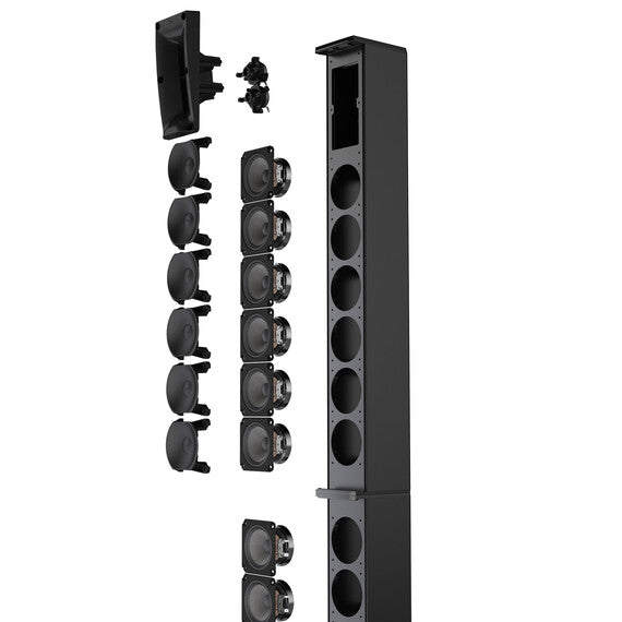 Columna cardioide para una dispersión controlada del sonido de medios y graves.